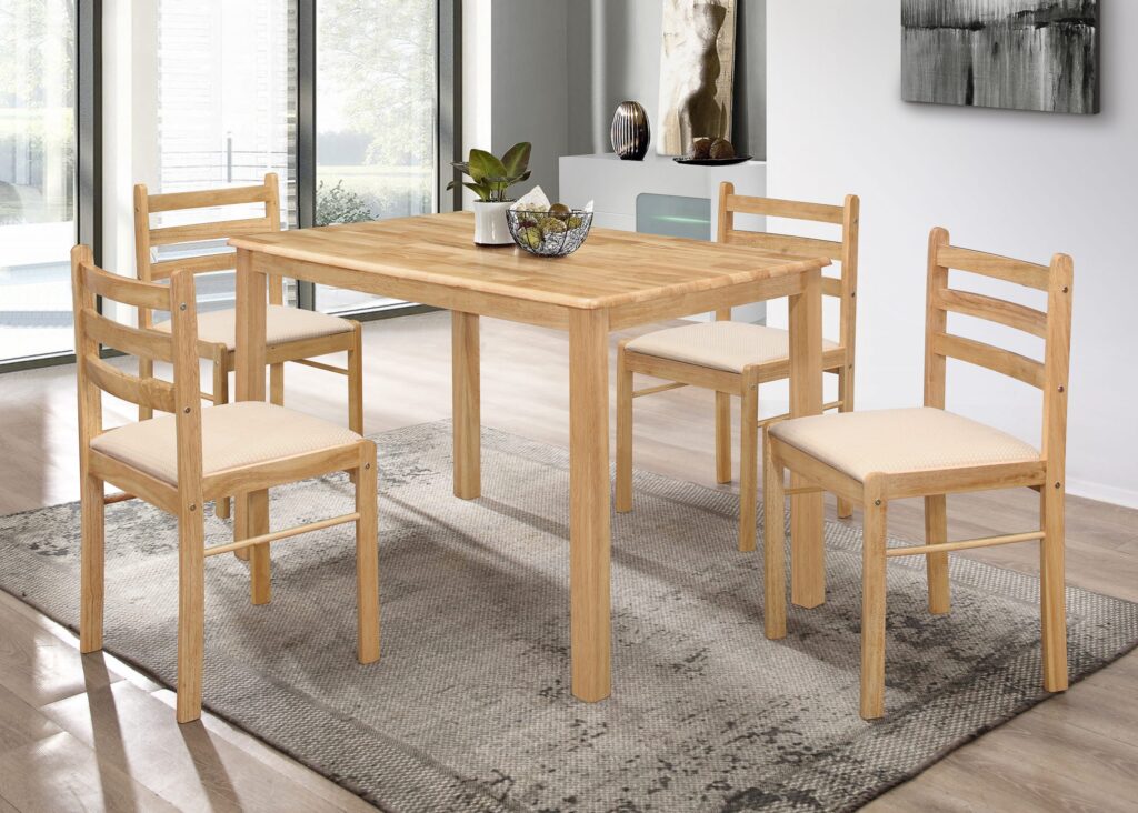 Made from natural wood, it offers a blend of simplistic style and comfort for any dining or living space.