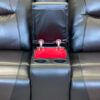 2) The 2 seater has cup holder(s) and storage.