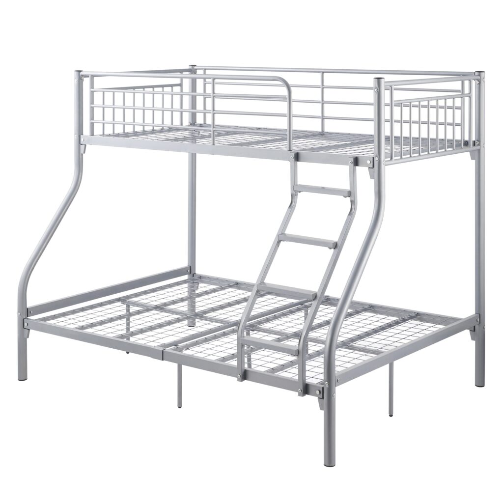 Functional and stylish, this silver metal triple bunk bed frame is perfect for maximising space in any bedroom. With its sturdy construction and sleek design, it’s a modern solution for shared or guest rooms.